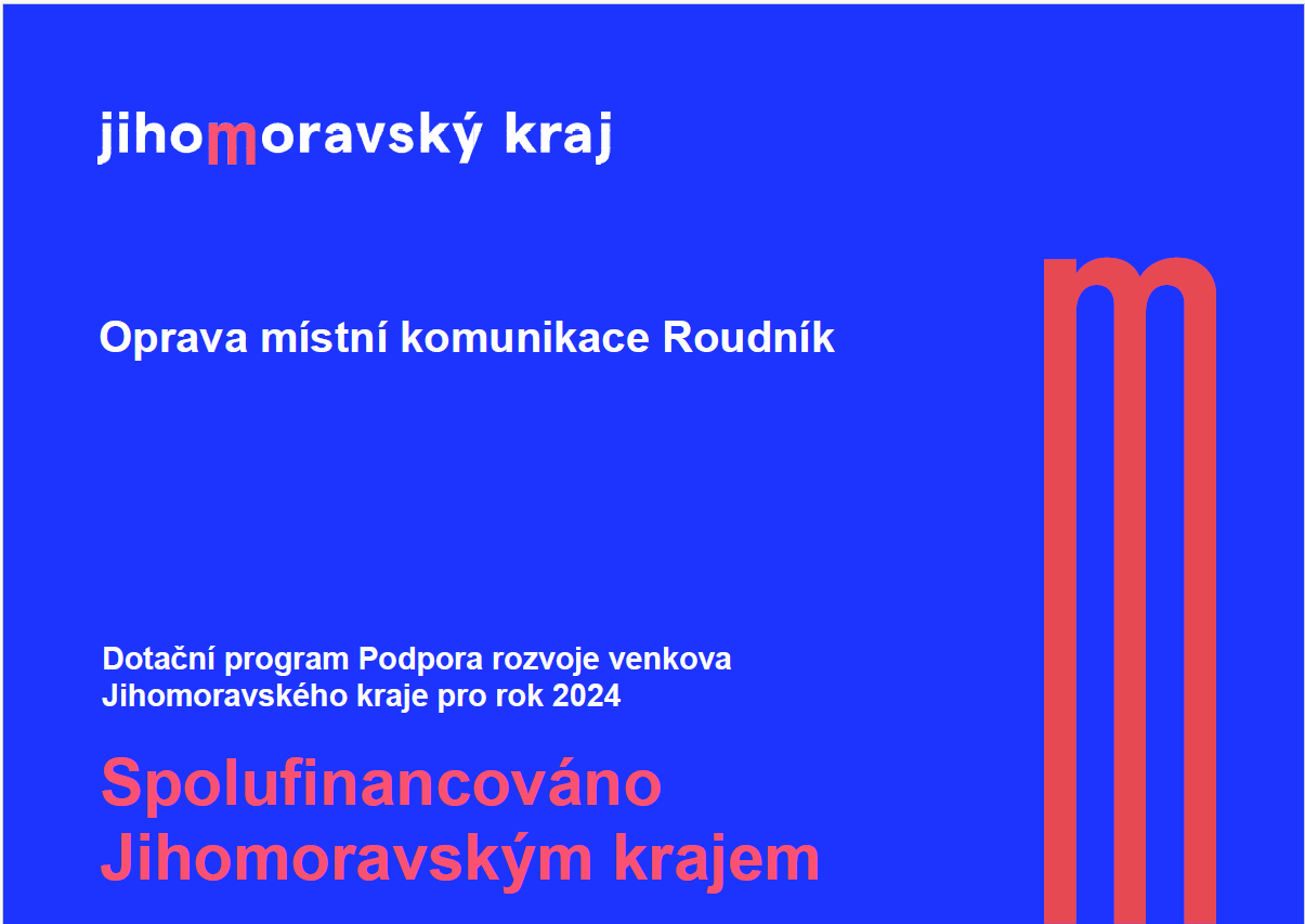 Místní komunikace v obci Roudník byla opravena díky spolufinancování Jihomoravským krajem a MMR. Tato oprava je spolufinancována z dotačního programu Podpora rozvoje venkova Jihomoravského kraje pro rok 2024. Tento program se zaměřuje na zlepšení životních podmínek a infrastruktury v menších obcích, což je důležité pro rozvoj a udržitelnost venkovských oblastí.